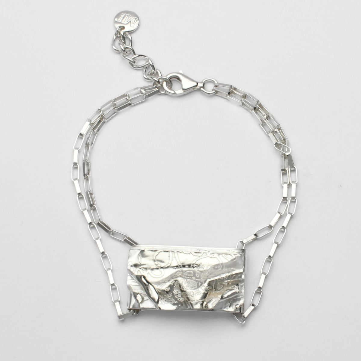 The "pages" are cut from a large page of silver, so that each piece has its own unique raised pattern. These little pages are then folded, with the corners individually and painstakingly hand-curled and paired with a modern paper clip chain to keep the pieces on trend while maintaining a wonderfully timeless and modern appeal.