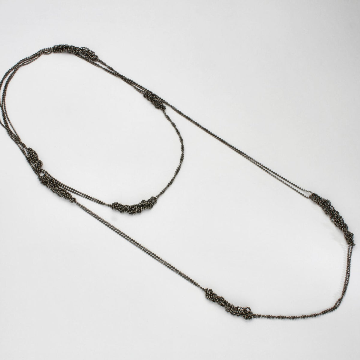 MT Gallery Artists Long partly crochet double row silver black rhodium necklace by Sabine Roth