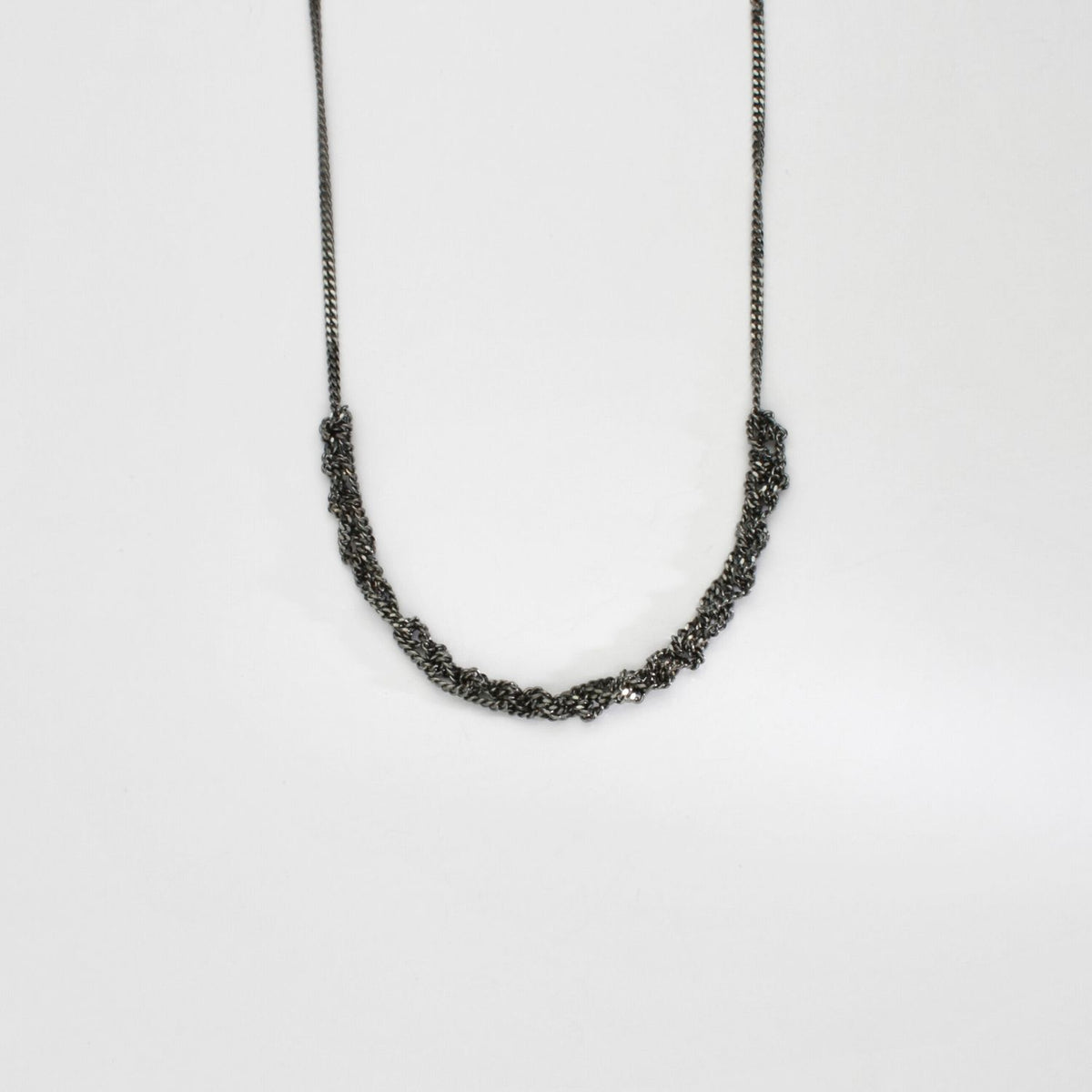 MT Gallery Artists Crochet in front silver black rhodium necklace by Sabine Roth
