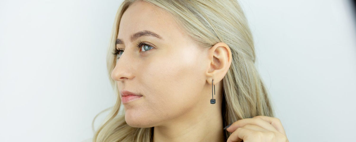 MT Gallery Artists Short forged black silver drop earrings by Emily Thatcher