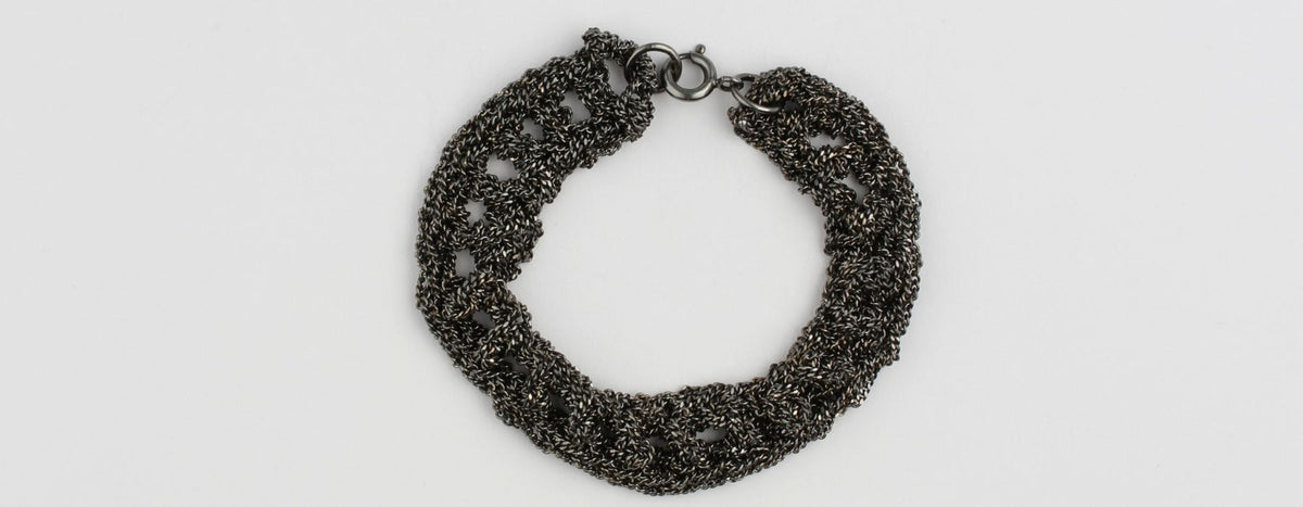 MT Gallery Artists Bracelet - Treble crocheted in black oxidised silver by Sabine Roth