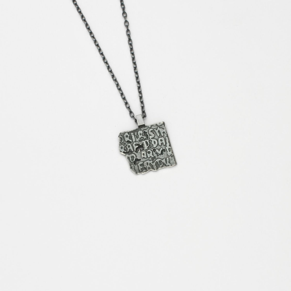 Mari Thomas Jewellery Carved: Black Silver Square Pendant