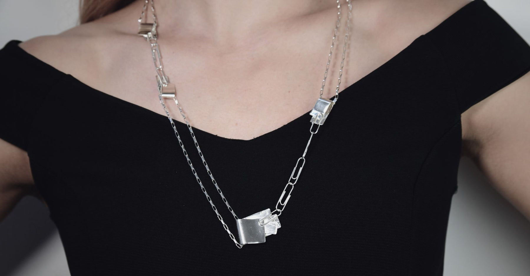 The inspiration behind the Memo jewellery collection comes from the marks we make on paper, from emotional handwritten love letters, to secretive private musings in journals, and quickly drawn sketches capturing brief visions. Formed by hand, the paper and its ink if folded over, and the marks kept safely hidden with a humble and simple twist of wire - the paperclip.