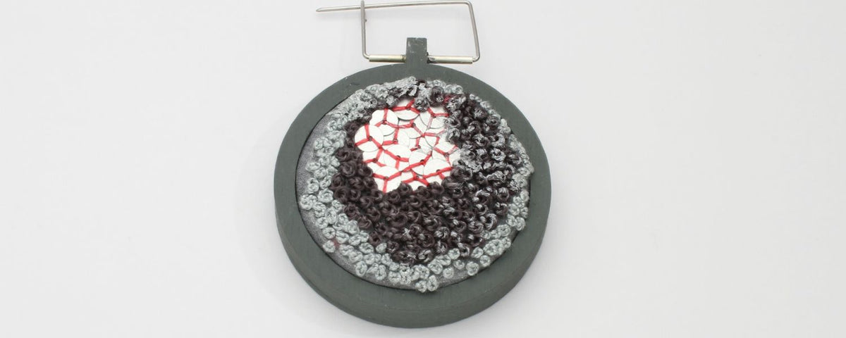 MT Gallery Artists Brooch - Sequins & French knots on cotton by Beatrice Mayfield