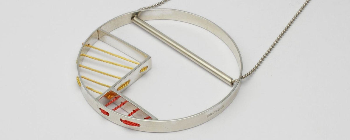 MT Gallery Artists Hepworth silver necklace on yellow silk thread by Polished Grey