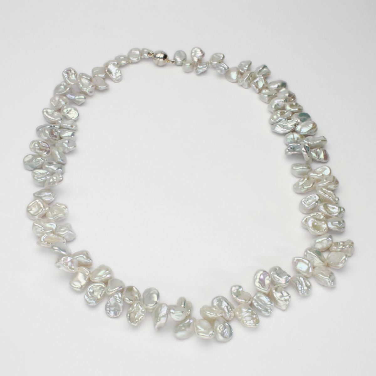 Mari Thomas Jewellery White silver keshi style pearl necklace with silver magnetic clasp
