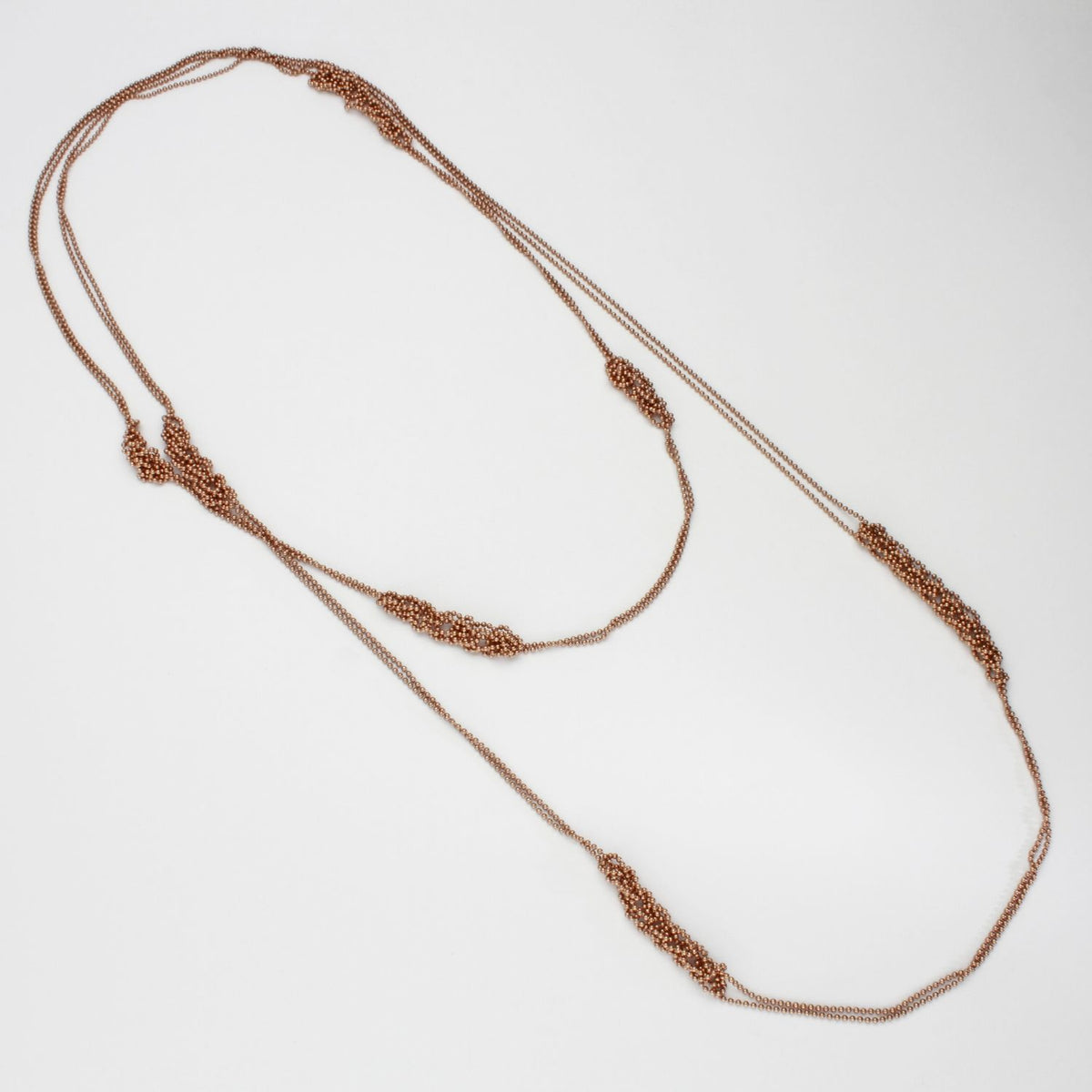 MT Gallery Artists Long silver rose gold plated double row with partly crochet necklace by Sabine Roth
