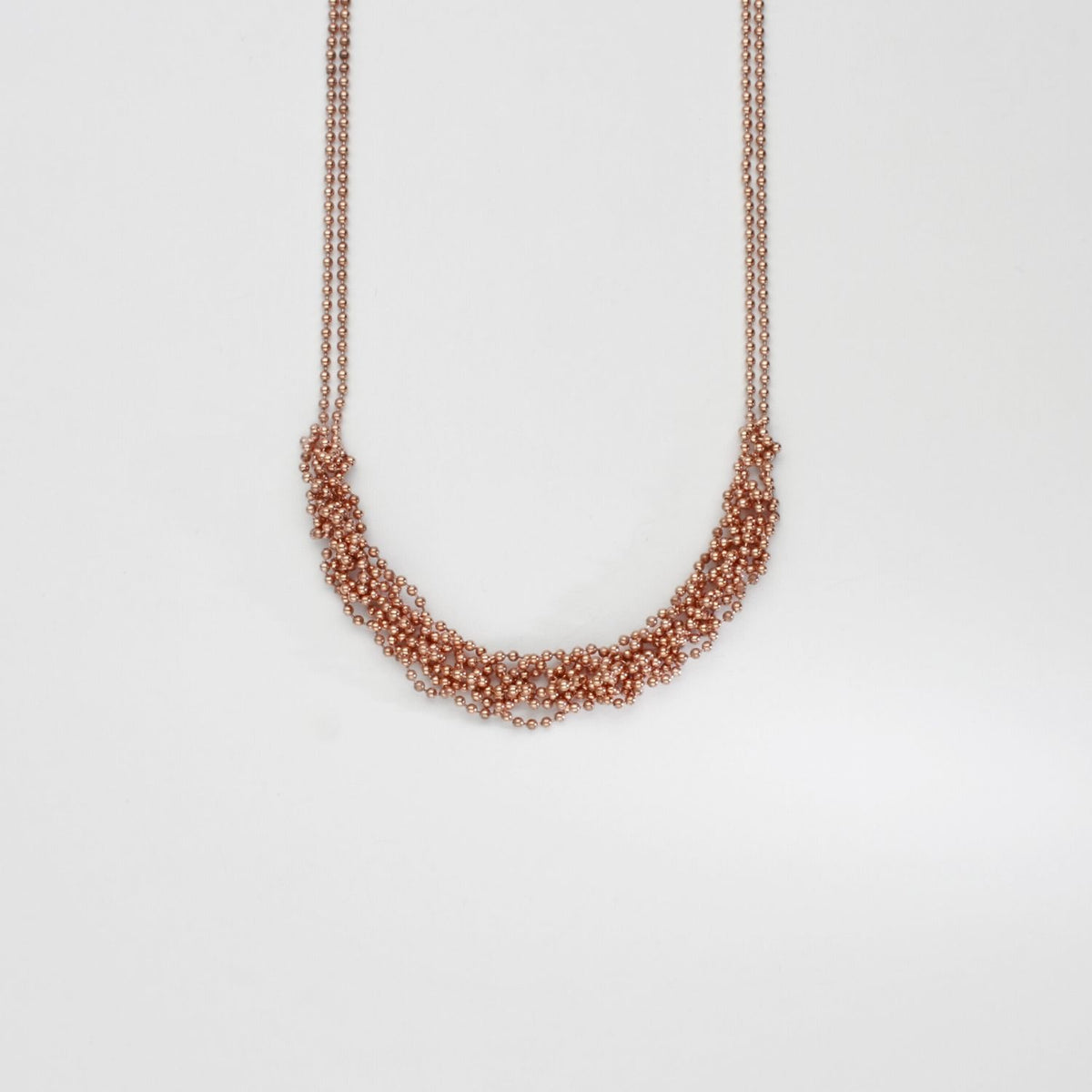 MT Gallery Artists Crochet in front double row silver rose gold plated necklace by Sabine Roth