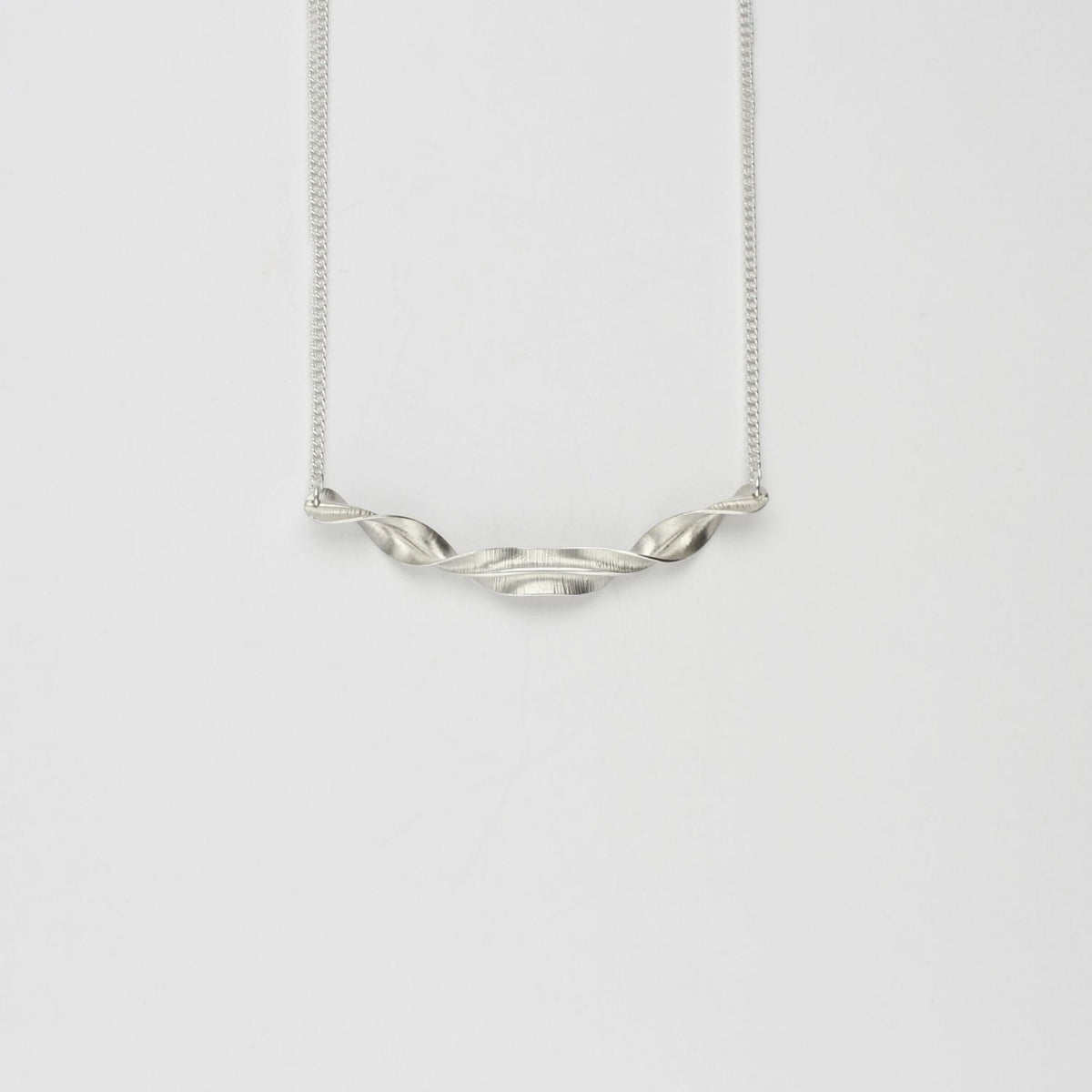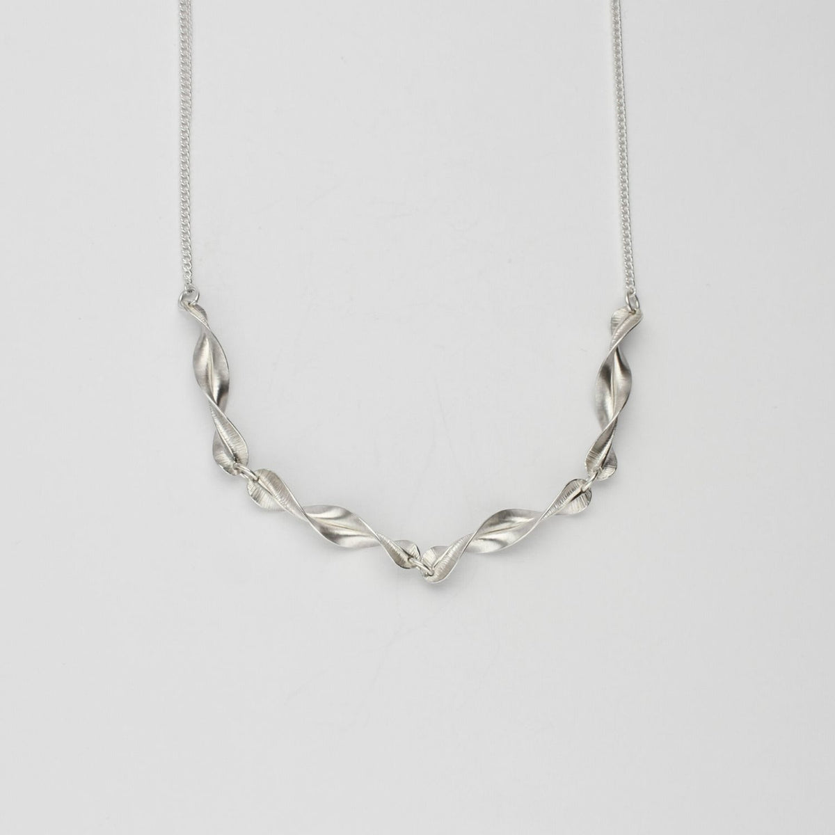 MT Gallery Artists Spring leaf ribbon twist small silver necklace by Yelland and Barker