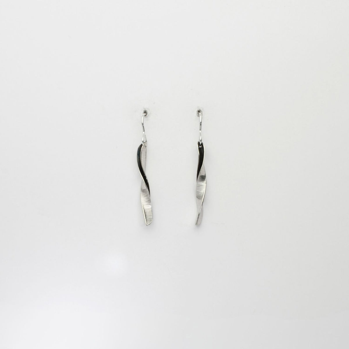 MT Gallery Artists Willow leaf slimeline full twist silver earrings by Yelland and Barker