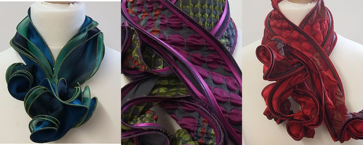A captivating range of distinctive 3-D textile accessories by Tammy Child based on her love of sea life and tropical forms. Using fabrics that include organza and satin she produces a stunning collection of scarves, wraps, jewellery and bags in an array of rich and sensual colours that generates beauty and elegance.