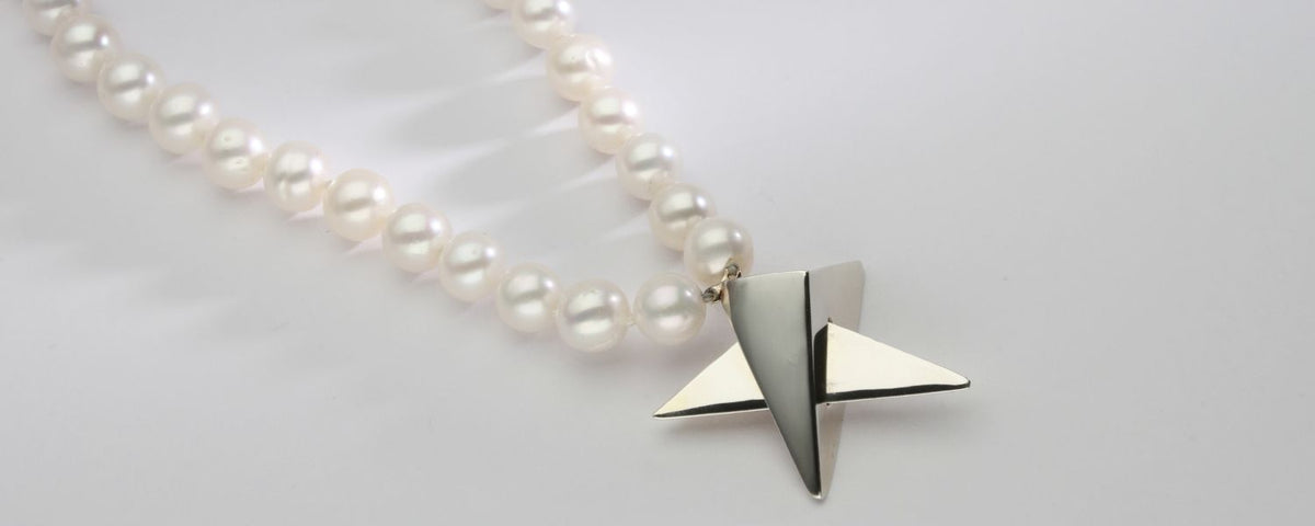MT Gallery Artists Big silver star on 30' pearl necklace by Yuki Mitsuyasu