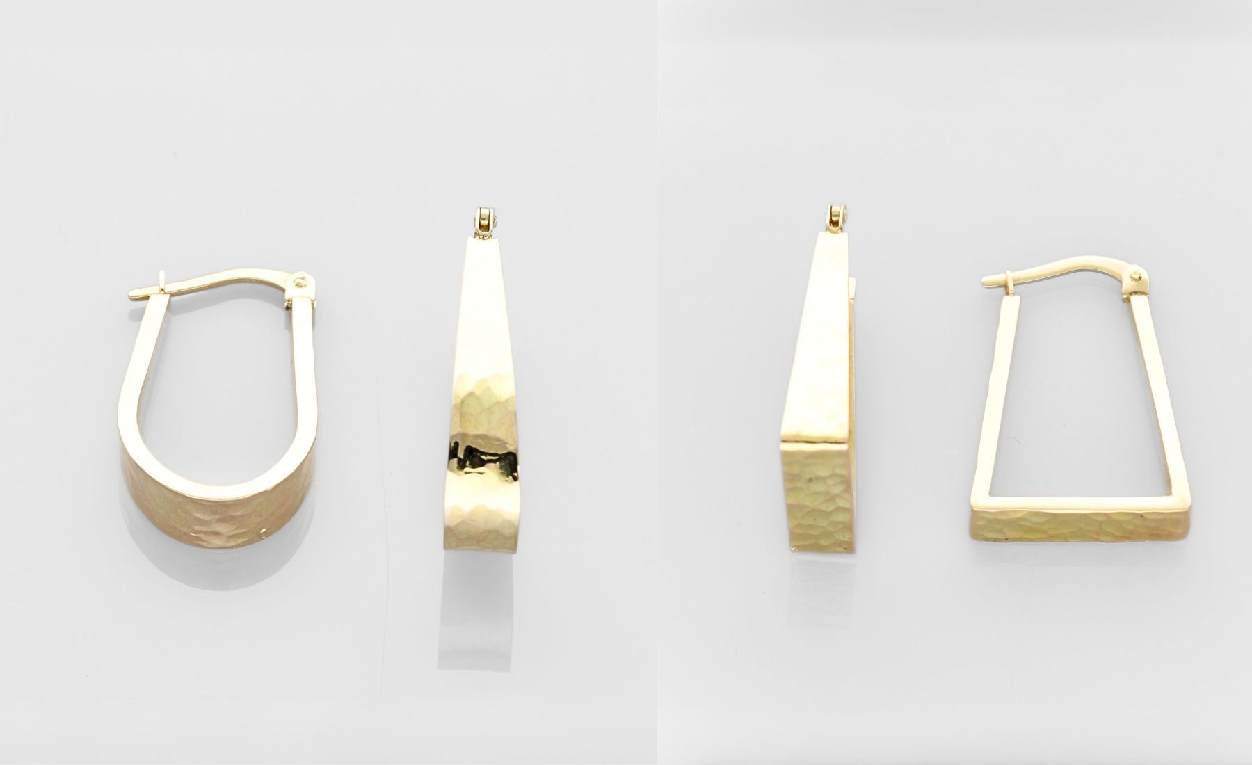 Assorted broken pieces of gold melted and remodelled into two pairs of earrings