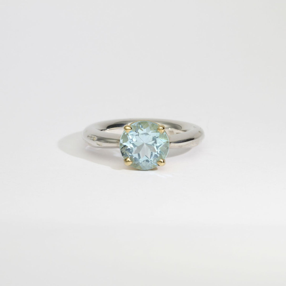 Halo silver ring with a marquise diamond in a 18ct setting by Charmian Ottaway